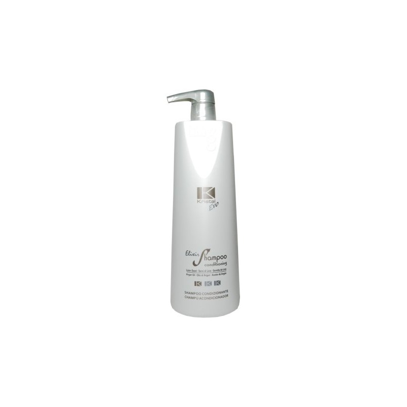 Kristal Evo Elixir Shampoo Conditioning. Its gentle formula with LINEN SEEDS & ARGAN OIL delicately cleanses hair contrasting the daily stress exposure.