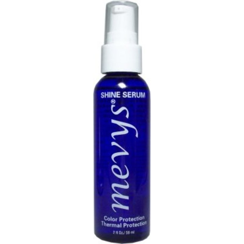 Mevys Shine Serum 2 oz. (Color Protection - Thermal Protection). Specially designed to seal the hair cuticle. Mevys Shine Serum helps lock down hair color while adding spectacular shine.