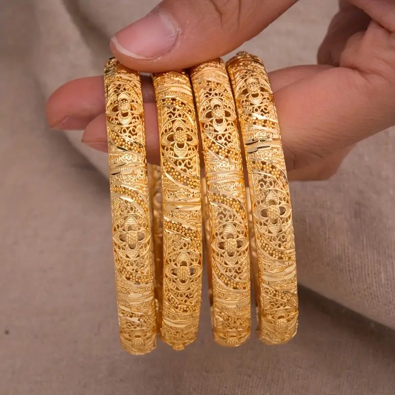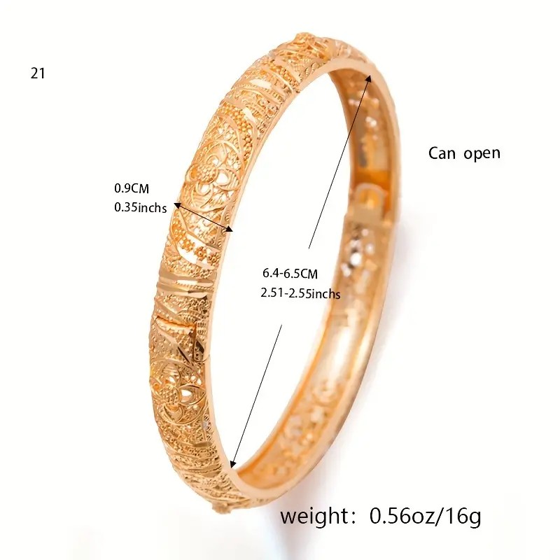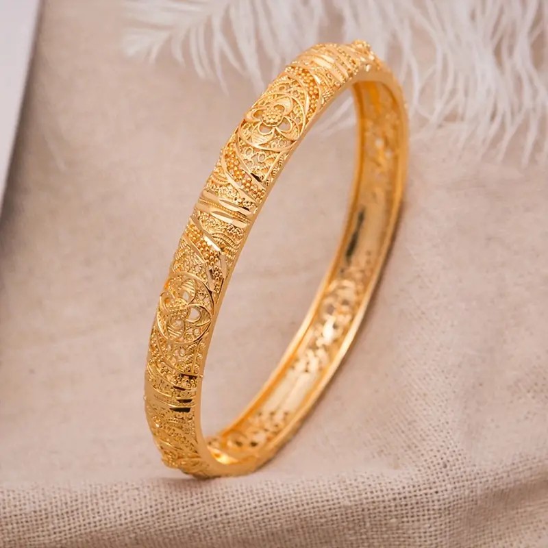 24K Gold Plated Ladies Cuff Bangle Hand Jewelry Bridal Luxury Ethnic Style Cuff Bangle Ladies Urban Fashion Bangle(1)
