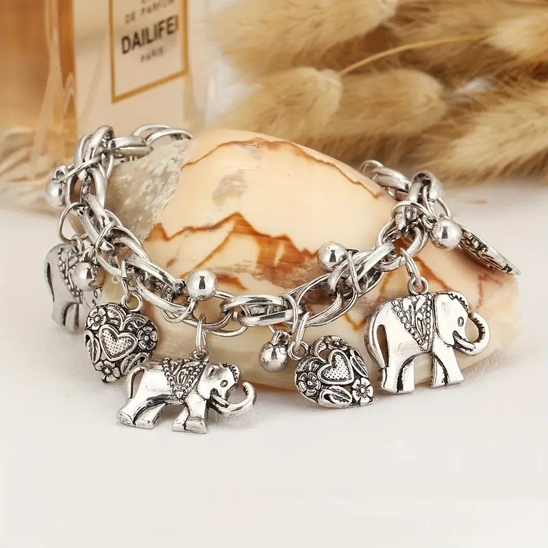 Men's Fashion Vintage Carved Elephant Bracelet Peach Heart Bracelet