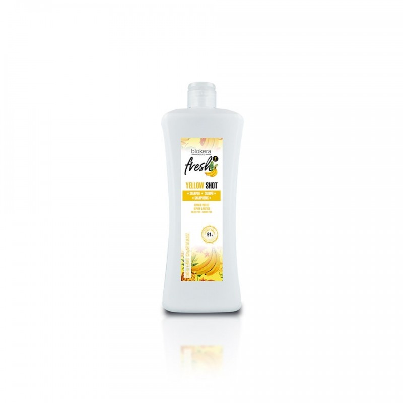 Champú reparador formulado con un Yellow Cocktail que protege el cabello de las agresiones externas, proporcionando una melena nutrida, con brillo y sin encrespamiento.