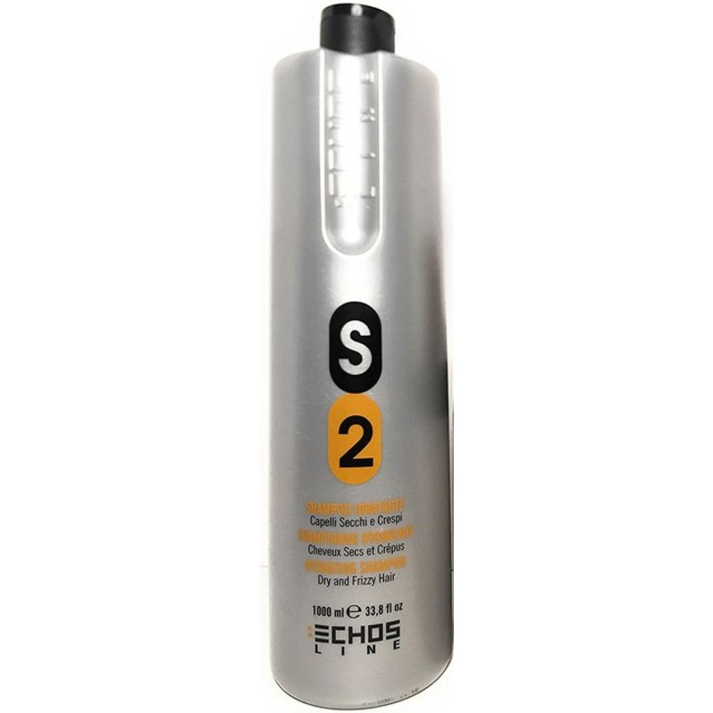 Echosline S2 Champú hidratante para cabello seco y rizado 1000ml/33.8oz. Enriquecido con Proteinas de Leche y de Trigo que aportan nutricion y hidratacion. Da suavidad y efecto desenredante a los cabellos y evita la formacion de nudos.