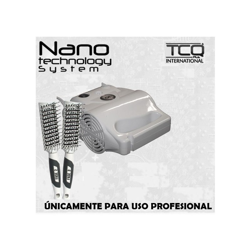 El nuevo modelo de la Máquina Nano/Aspersora rompe la molécula del producto en 1 mil millonésima parte de la molécula original. Desde el cepillo, que se adjunta a la máquina por una manguera, obtendrá una niebla fina y fría conteniendo el nano tratamiento. Pequeñas partículas de producto penetran muy profundamente las fisuras del cabello, dejándolo brillante, sedoso y suave.