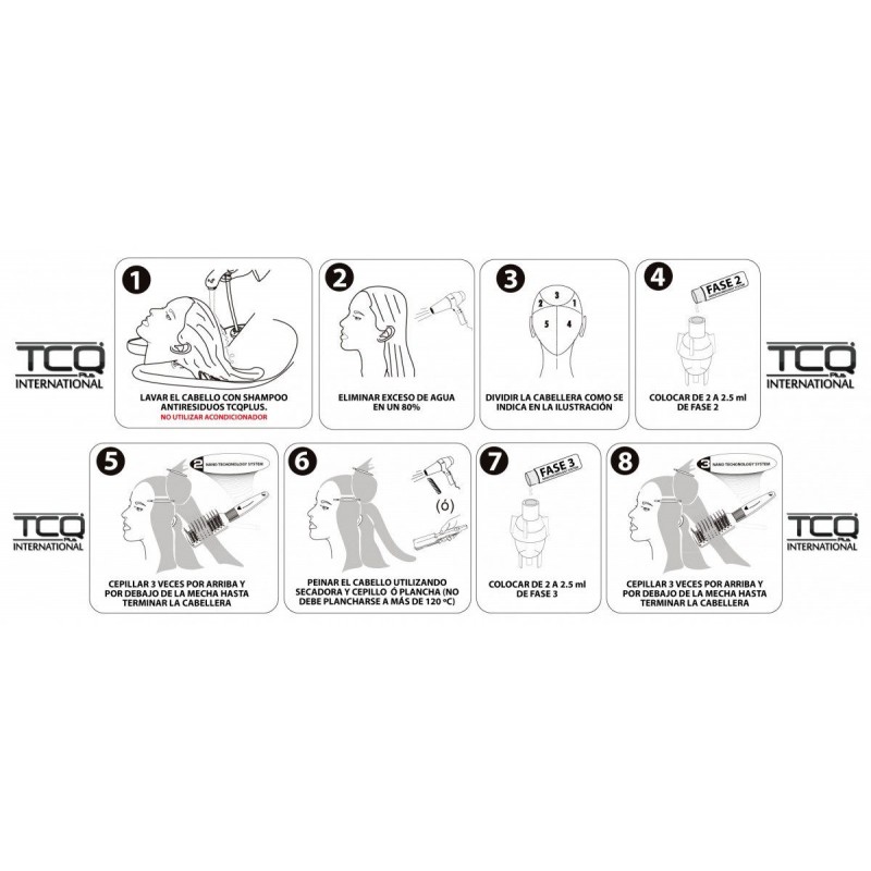 La Máquina Nano/Aspersora rompe la molécula del producto en 1 mil millonésima parte de la molécula original. Desde el cepillo, que se adjunta a la máquina por una manguera, obtendrá una niebla fina y fría conteniendo el nano tratamiento. Pequeñas partículas de producto penetran muy profundamente las fisuras del cabello, dejándolo brillante, sedoso y suave.