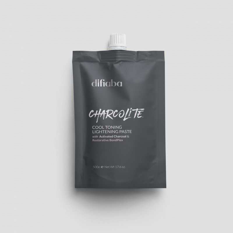 Difiaba Charcolite Lightener Paste 500g/17.6oz. Fórmula avanzada que envuelce las hebras del cabello en una capa dura, manteniendo un equilibrio perfecto de humedad y textura óptima para crear rubios naturales con precision y liberta.
