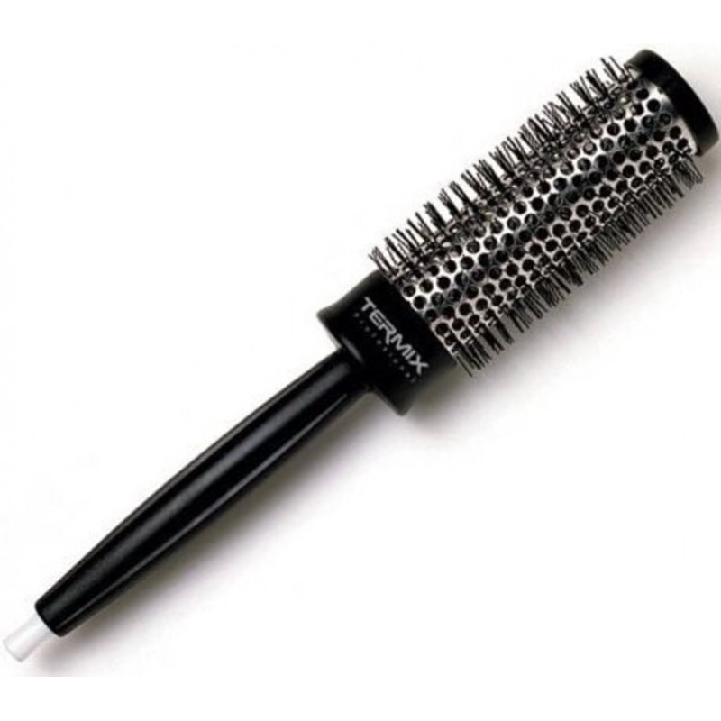 Cepillo Termix térmico profesional de aluminio diseñado con fibras de nylon, ideal para todo tipo de peinados. Debido al tubo de aluminio, mantiene el calor durante el proceso de secado, consiguiendo reducir el tiempo de secado hasta en un 50% con respecto a los cepillos de madera convencionales.