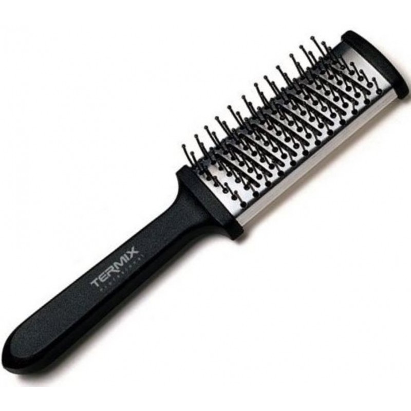 Cepillo Térmico Plano Termix es por su disposición de fibras y su placa de aluminio plana térmica, el cepillo ideal para preparar el cabello antes del uso de la plancha, ya que trabaja bien la raíz y acelera el proceso de secado. Su componente térmico está diseñado para peinados lisos sin volumen.