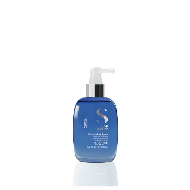 Alfaparf Semi Di Lino Volumizing Spray 125 ml/ 4.23 oz. Para Cabello Fino y sin cuerpo. Spray voluminoso e intensificador del cuerpo para el cabello fino: apoya las fibras capilares y mejora su grosor con una sujeción flexible para un volumen duradero..
