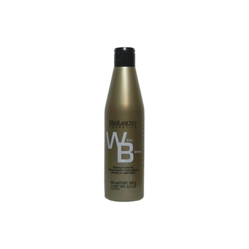 Salerm Champú Para Cabello Blanco 16 Oz. 500 ml. Champú formulado para eliminar las tonalidades amarillentas de los cabellos canosos, devolviendo el brillo y la luminosidad.