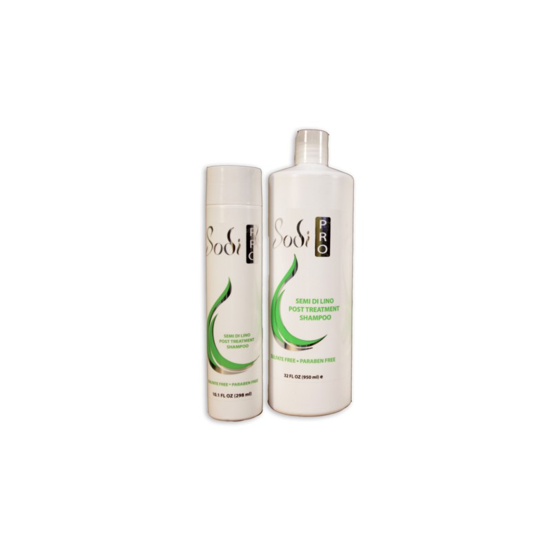 Sodi Pro Champú Semi Di Lino Post-Tratamiento 298ml/10.1oz. Libre de Sulfato, Parabeno y Sales Duras. Hidrata, desenreda, limpia y rehidrata el cabello permitiendo una manejabilidad sin igual, aportando elasticidad y brillo. Ideal para uso en el cabello tratado químicamente.