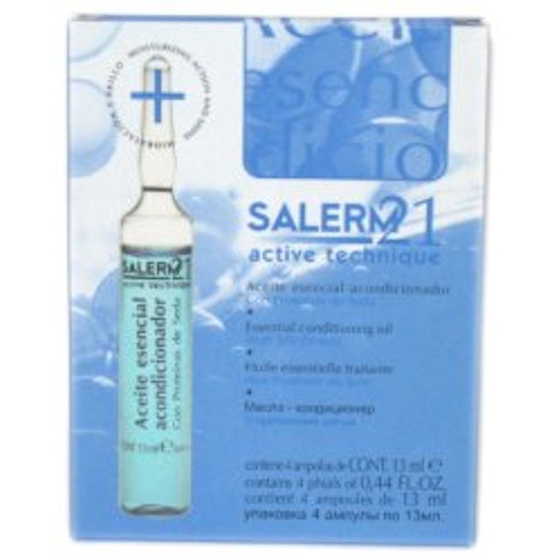Salerm Aceite Esencial Acondicionador (0.44 Fl. Oz. x 4). Tratamiento específico para cabellos secos, tratados y/o coloreados. Devuelve la naturalidad y manejabilidad a los cabellos sensibilizados.